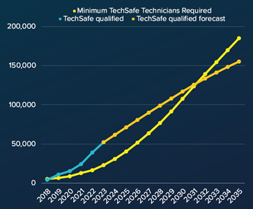 Forecast gap between predicted number of technicians required to service and maintain Electric Vehicles and TechSafe EV Technicians