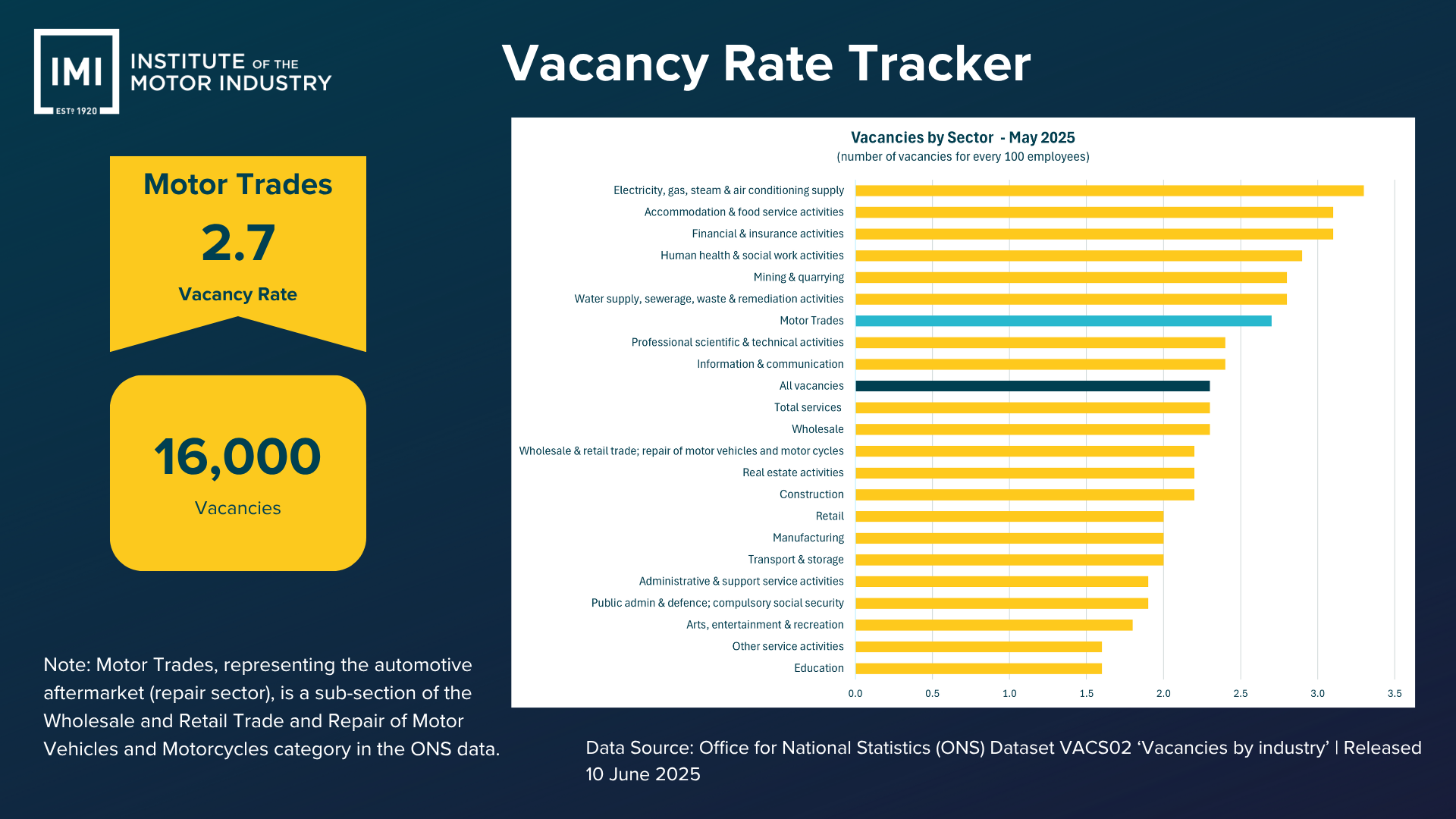 - Vacancy rate in Motor Trades: 2.7