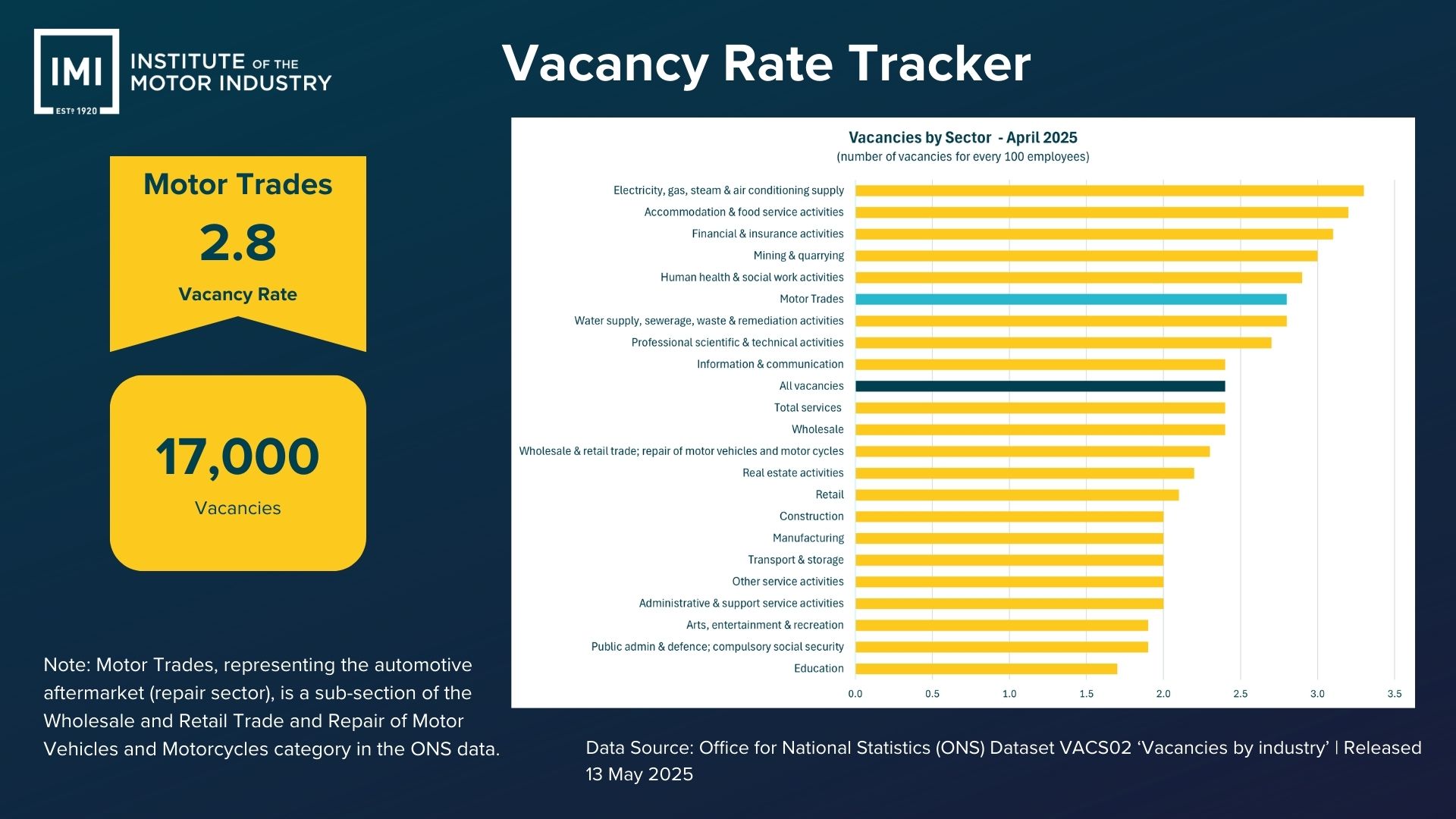 Each month, we track vacancy trends across the UK job market to assess workforce pressures in the Motor Trades sector based on the latest Office for National Statistics (ONS) vacancy data.