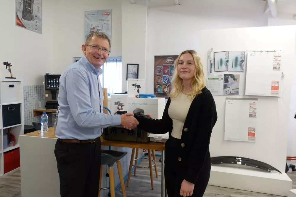 Through Victoria’s hard work, she had been awarded the IMI bursary, and we were delighted that she chose to spend it on a variety of SATA equipment. Congratulations, Victoria. We look forward to watching you progress in your career!SATA UK